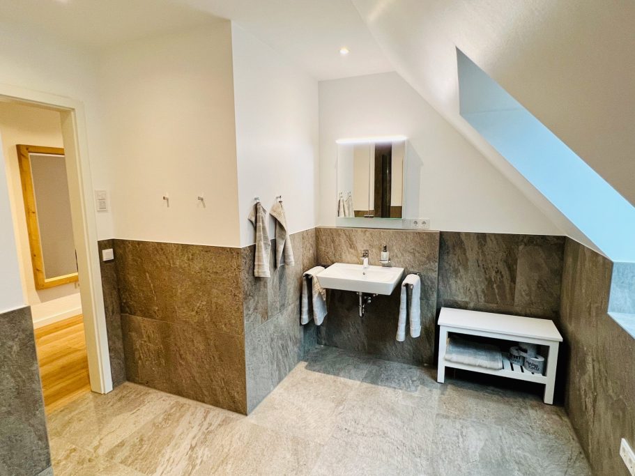• Design-Badezimmer mit ebenerdiger Dusche