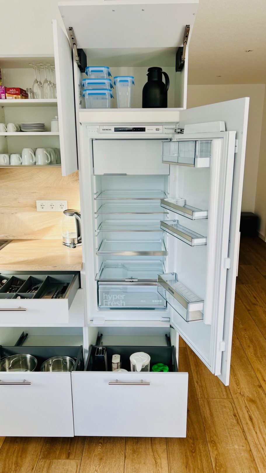 Die moderne Küche ist vollständig ausgestattet.